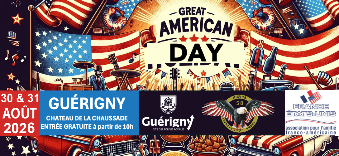 Ouverte à tous, ces deux journées américaines se déroulera à Guérigny (siège du Chapter Nièvre-Guérigny) au coeur de la Cité des Forges Royales* les 30 et 31 août 2026 : du Château de la Chaussade et de la Place de l’Indépendance des Etats-Unis d’Amérique en passant par la Cour Verte, la Cour d’honneur et les magnifiques parcs en bordure du plan d’eau des Forges Royales …